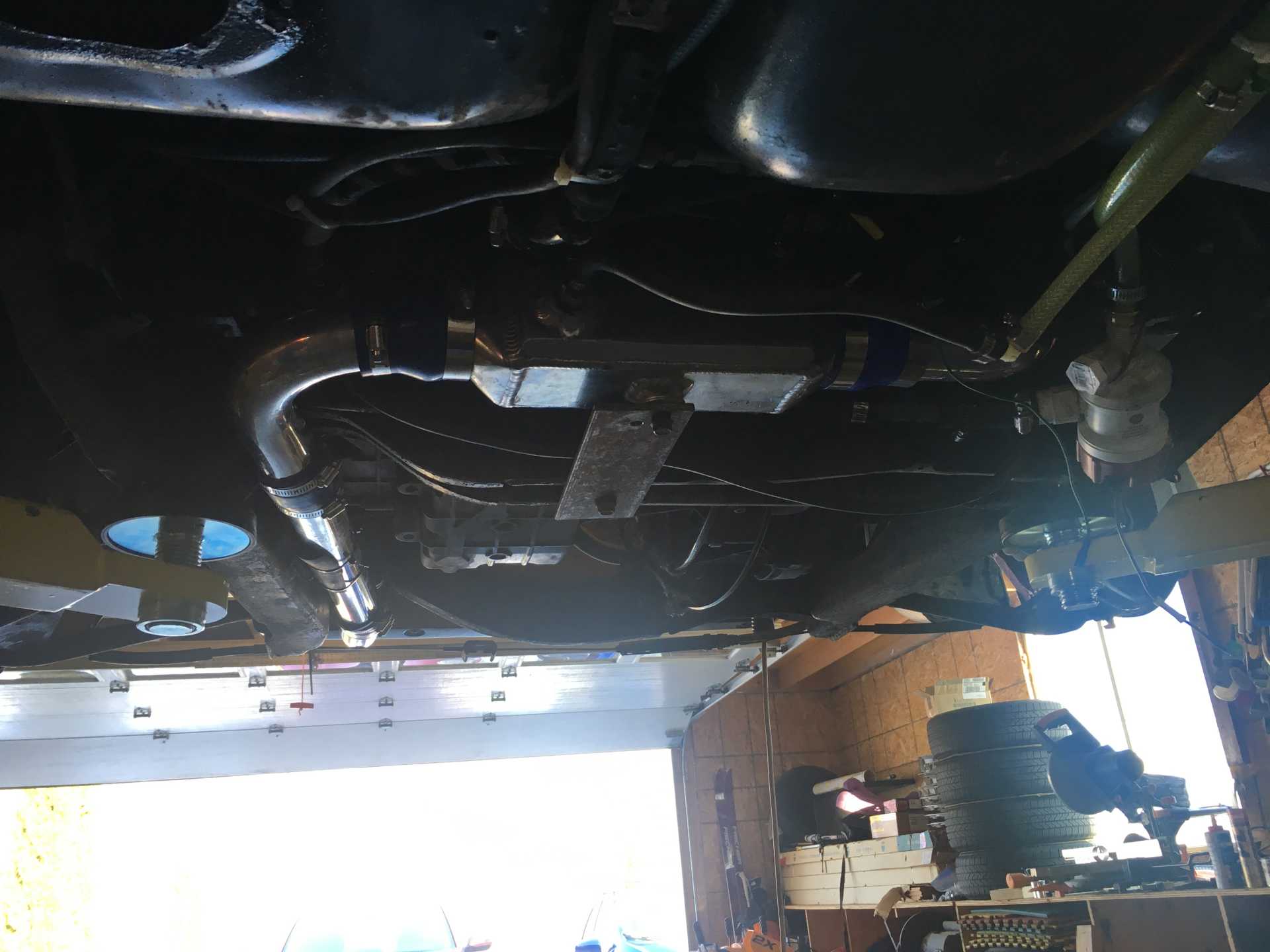 Picture shows the new location of the heat exchanger and the pump. Got rid of a lot of tubing this way. The charge piping is longer now but I have had it this way before and did not notice any difference.
