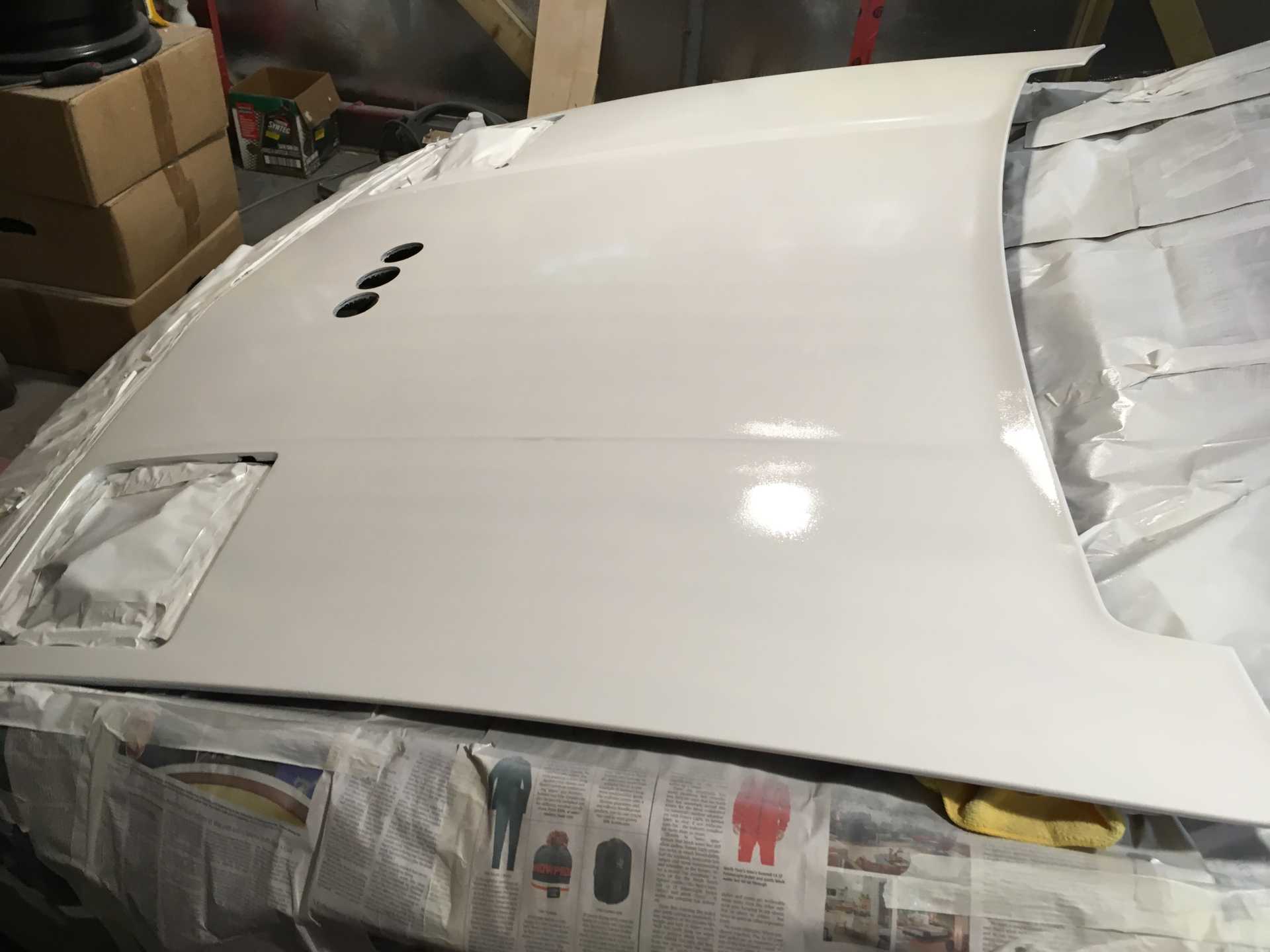 So I hung the hood up sideways and vertical and gave it another coat of paint . Came out much better but not perfect. No drips this time and I should be able to buff out the imperfections so I am going to call the hood done.