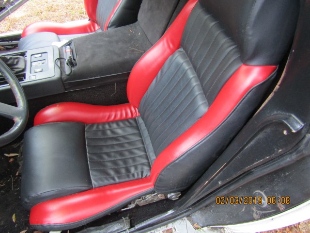 Now to the pics, there are a couple of things that may be of interest including new seats done very well I may add, can't say that they are Mr. MIkes, because I haven't seen any of those up close, but these were done very well and look and feel like new leather although they could be pleather? Also the door panels were expensive at one time but are warpped now, unsure if you could get them straight again or not, but I know a few people would like the extra speaker space. The interior was turned to black, and the dash looks really well down with an epoxy paint from what I can tell, there is one small crack in it but other than that, great shape and corners are in tact. There is black carpet in it that looks like it was ordered black and not dyed, it is a little dirty but I think it will clean up just fine as it shows no wear at all. Car also has a wing delete rear decklid.
