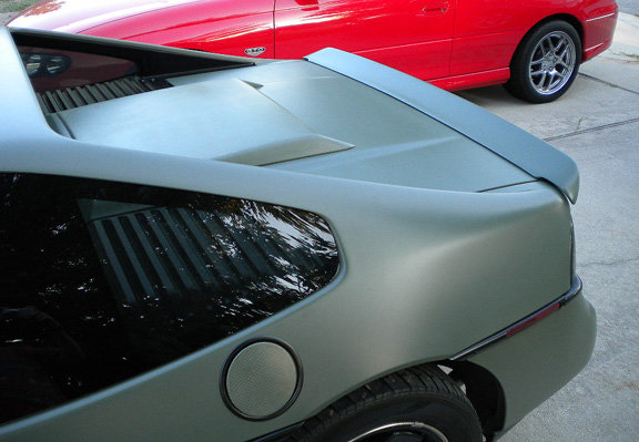Here are a couple of pics of a couple of pieces that Sage makes. "Camaro" style rear spoiler and the roof spoiler.