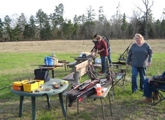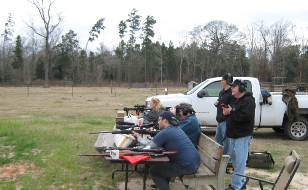 2 of my nieces waiting for 'the 200 yard boys' to get thru so they can move up closer to the targets with their handguns. all 3 nieces have concealed carry.