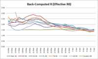 | quote | Very interesting differences in here at the start of this series. all except California showed a material positive slope in the effective infection rate and then all rolled over before the mitigation measures went into effect, and have continued since.