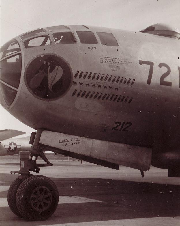 I'm cheating here. I just opened a book on B29s and a photo my daddy took fell out. I digitized and cropped it so you can see the nose art a bit better. Probably taken at Hobbs NM or Davis Monthan AZ near the end of its life. In a previous paint job this airplane was called "Trojan Spirit". Now it's "721" Notice all the trips it took over the "hump" to supply Chinese bases from India to support the bombing of Japan. The 678th also attacked Bangkok Siam, to bomb railyards and bridges. Also Formosa, Malaysia, Burma. etc.