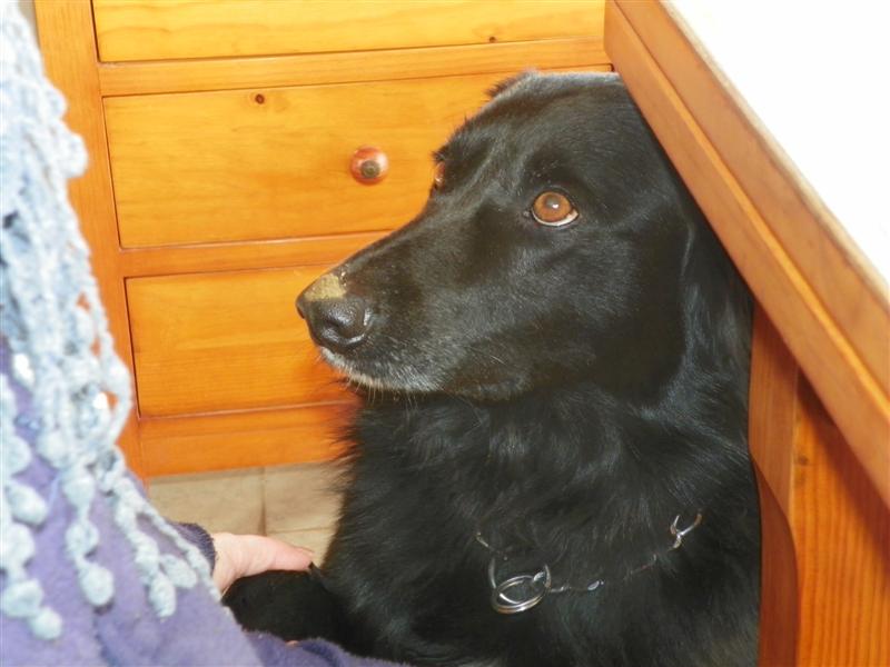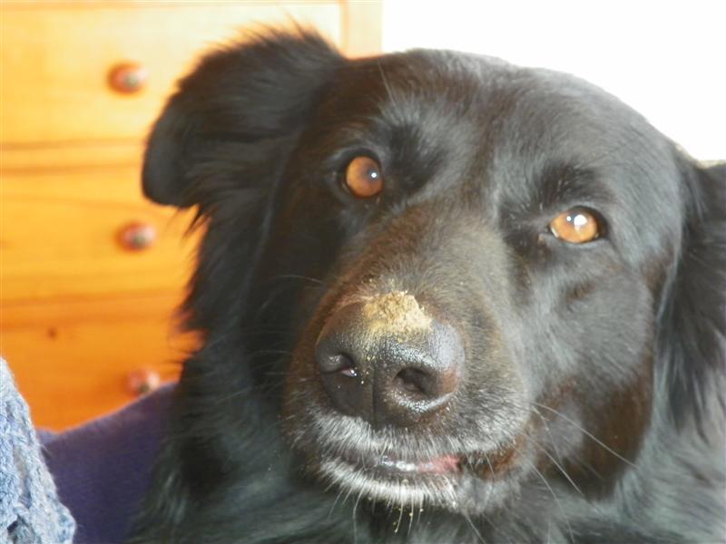 Back to the animals ...and, of course, Zwerver. He can count!!!! Ellie cooks a big pan of soup once a week, and that involves two soup bones. Of course,Zwerver gets to have them, but one at a time. Yesterday, he was presented with the first one. He took it gratefully,, noticing the door was open He disappeared with the bone into the garden, and came back 5 minutes later, and sat in front of Ellie with the LOOK ' Errrmmmm...I seem top have...errrm..mislaid my bone Mummy I don't know WHERE it is...and I was SOOOOOOO looking forward to eating it...Ummmm...I don't suppose....like....y'know...there IS another one in the pan...and....please???'.(Notice the right paw ) Sadly, as you will notice, the the telltale pile of dirt on his nose gave him away Mummy said 'NO!!!!'...