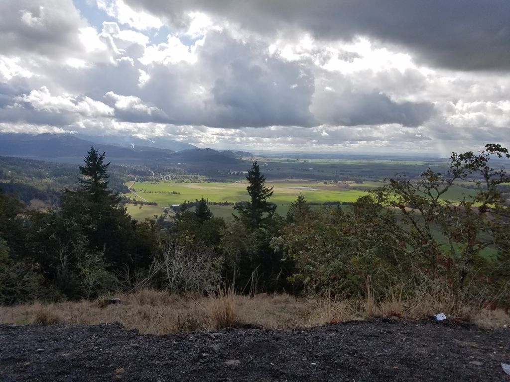 View is south from Washburn Butte. Brownsville, where "Stand By Me" was filmed is in distance at left.