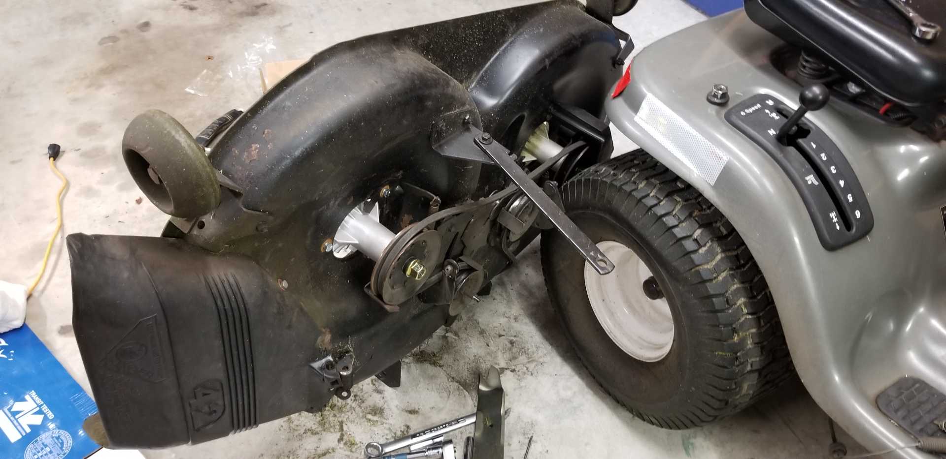 A few months ago, I hit an exposed tree root which broke a mounting tab on one of the spindles.