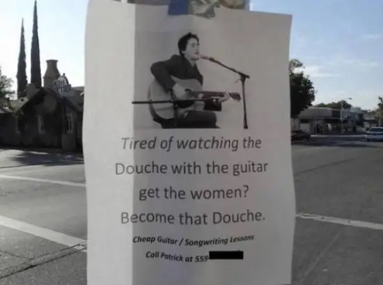 Good advertising! But the rest of the story is the drummer is just gonna steal the guitar player's girl and make a 2 girl sandwich with her.