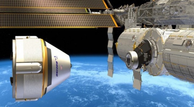 An artist's rendition of what a Boeing Starliner capsule may someday look like docked where the big boys already are.
