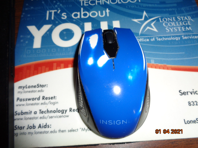 What a 5 yr old cheap Insignia wireless mouse looks like. (the white spots are where the blue paint wore off.)