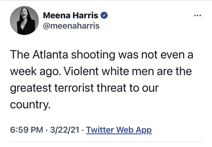 Here is the niece of Kamala, "Knee Pads", Harris blaming white men for pro ISIS Ahmad’s actions.