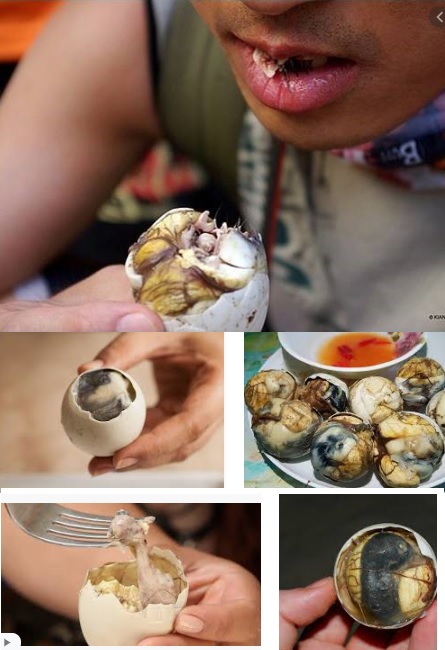 Balute. Considered a great delicacy in the Philippines and a couple other Asian nations. Partially incubated then fermented duck egg is the usual explanation. I've seen them eaten but didn't have the nerve or hunger to try them myself.