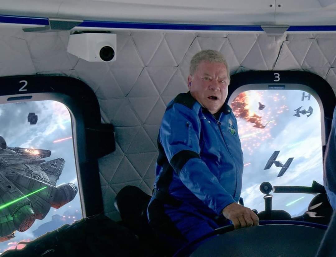 Heh, a few days before the "amusement ride" Shatner was asked what he would do up "there". He responded "look out the window at the vastness of space and down on the fragility of Earth". Is he a Trekie or a Greenie ?
