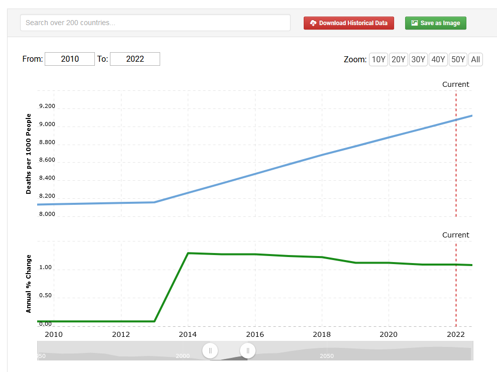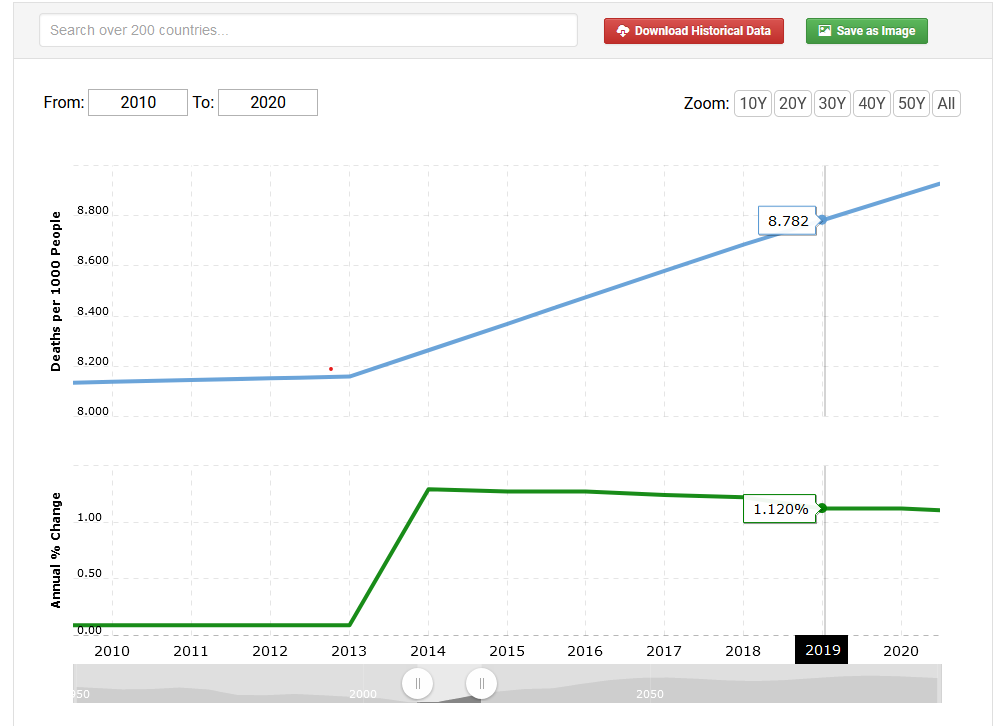 I looked up the total increase in deaths. It's in line with population and hasn't had any major "bumps" since 2013.