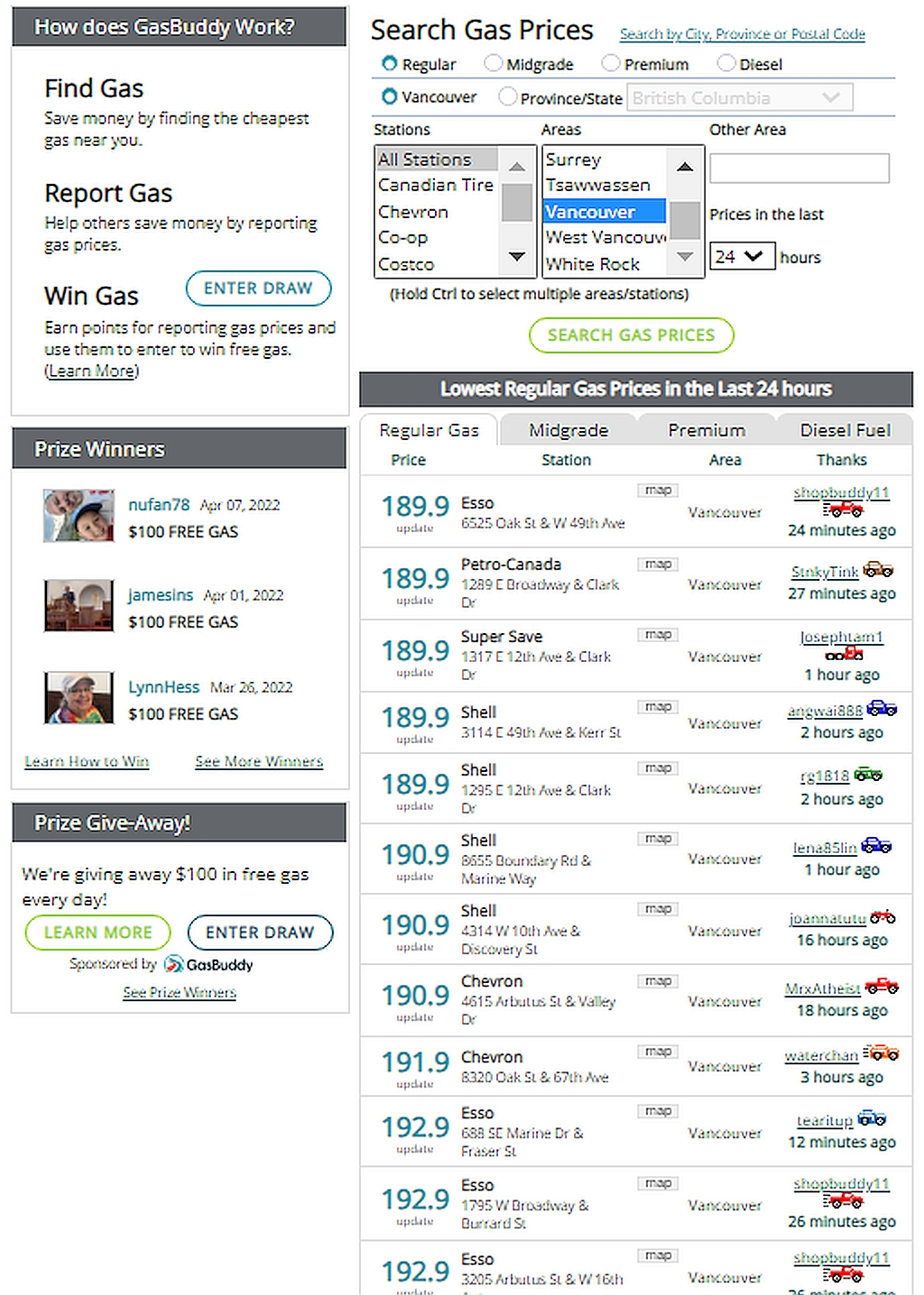 However, I definitely find the site to be worthwhile checking before filling my tank... especially with gas prices here being the highest in North America!