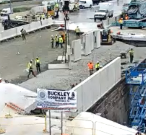 Right now 6ABC is using the camera they installed first day on SB side of the gap. Stopped all foaming and most everyone seem have gone too. Just mini digger w/ hammer head a few others to knocking off old metal etc to clean edges of old road. (No clue what other w/ hammer head is doing just breaking concrete on the roadway.) Now another digger is picking up "trash" on other side. (They move a lot so this part likely make no sense by time people read...)
