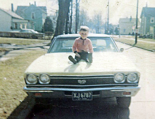 The first hot rod I remember was my uncles 60 something mustang. He couldn't drive it on the street so he use to drive it in the cemetery where my grandfather worked. They lived on property so it never went on the street. He never got to put a tag on it. Sold it and joined the Army when he was 17. Back then they gave you a choice, jail or the armed forces. Not sure when I started to love cars, here is very young me on my uncles Chevelle.