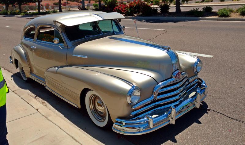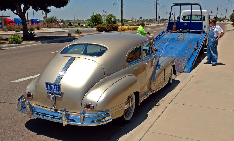 I saw this beautiful '47 Poncho on yesterday's bicycle ride. That's the owner wearing the overalls. He told me that it had an LT1 and while going down the freeway, it just died. He figured it was a computer problem.