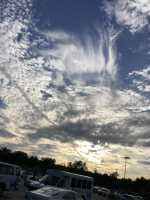 A passenger jet contrail and an influx of cooler air combined to create a pastiche of variegated cloud types before sundown on Friday the Thirteenth (September 13) above the southwest quadrant of St Louis County, MO.