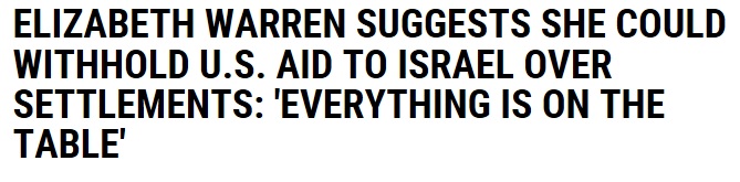 Lyin' Liz Warren could pull U.S. military aid from Israel if it does not stop building settlements in the West Bank.