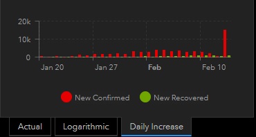 It didn't really make sense did it Mark? On the 10th of Feb the total infections was 42,300. 24 hrs later on the 11th, it was listed at 44,300...a 2000 jump. 24 hrs after that Feb 12 it was only 44,700...only 300 new infections in the same time period that had previously run several thousand??