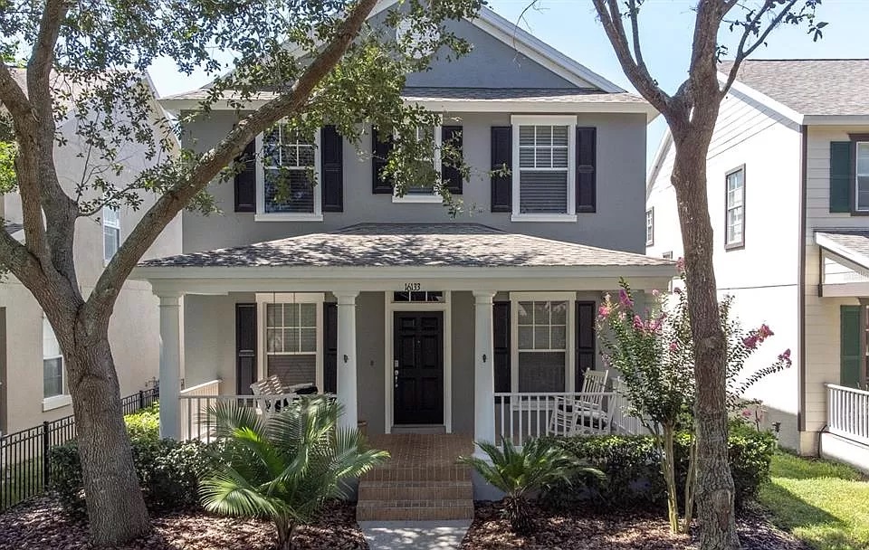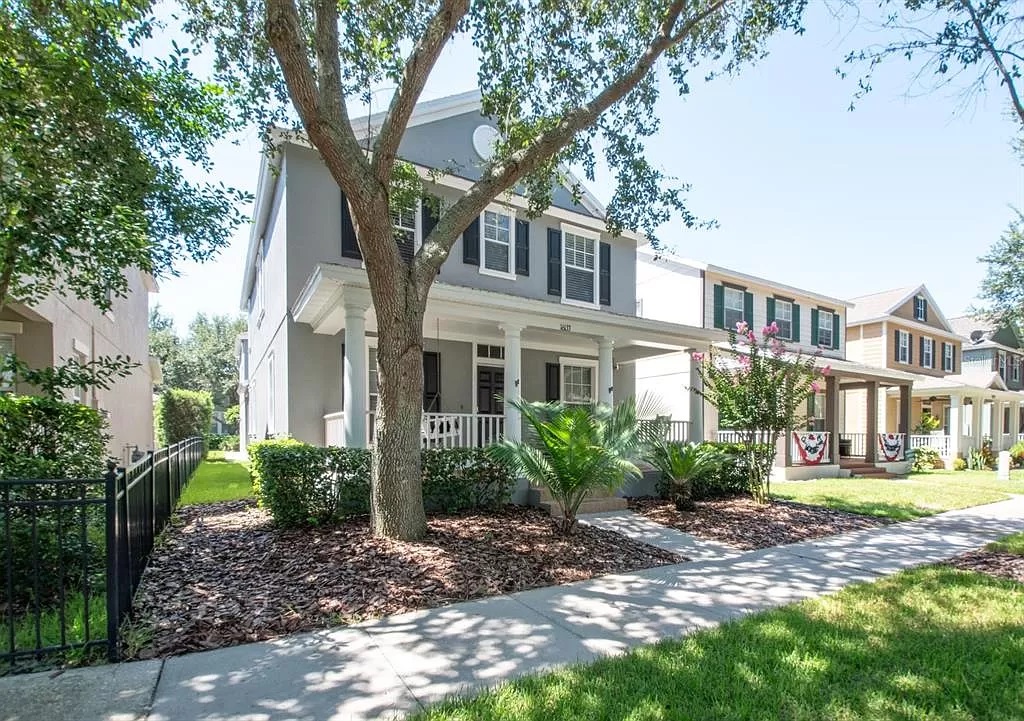 Anyway, this is another picture of the home where you can see better where the sidewalk is, and the distance from the road in the front. In front of this home is a massive community center with a couple of restaurants and a huge splash pad, water park, and outdoor theater which doubles as a soccer field for kids. So the dude living in this house walks 35 yards and he's at a bar... 40 yards if he walks around the splash pad.