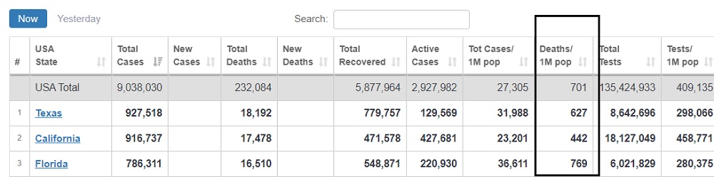 | quote | | South Korea had its first case of COVID at the same time, the same week as the United States. Do you know that their per capita death rate is just 1.3% of what ours is? Think about that statistic. I’ve given this statistic a couple of times and people haven’t really focused on it. The number of people in Korea who have died of COVID per capita is less than 1.5% [of] what our death rate is. |