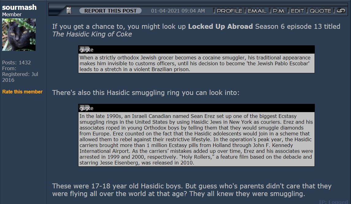 You mention Jews in your posts so often that you're now apparently doing it unconsciously. The following post caught my eye as it was even stranger than your usual stuff. (It's easier to post a screen capture than simply post a quote due to the internal quotes.)