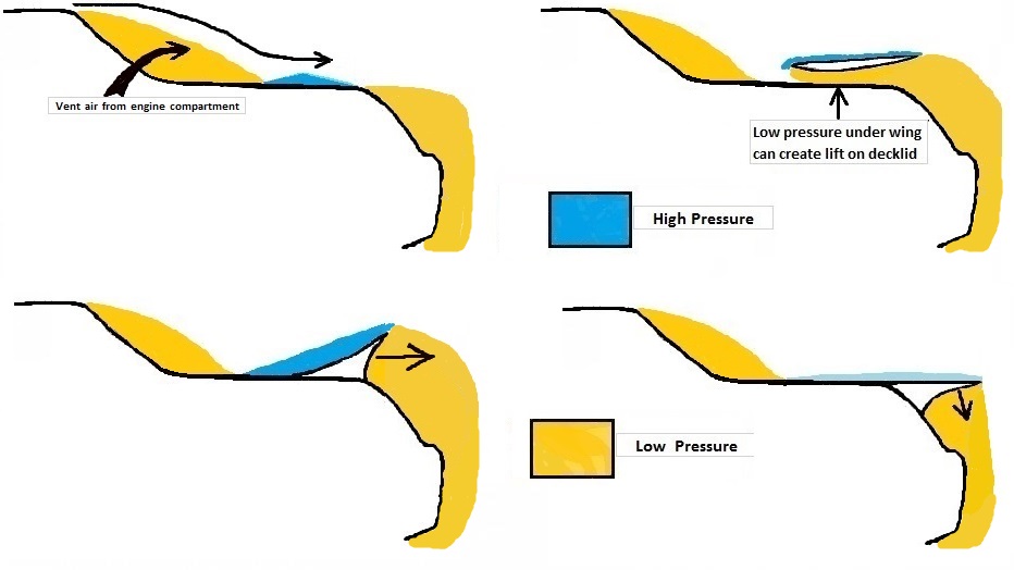 I also did some diagrams of how different wing/spoiler setups on our Fieros can create down-force vs Drag...