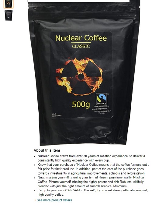 Interesting. When I worked as a coffee roasterman decades ago, Robusta coffee beans were looked upon (by coffee connoisseurs) as a cheap low quality "filler" in coffee. The better blends would promote the fact that only Arabica coffee beans were used. Robusta beans were known for being low in flavor and very high in caffeine... which I guess is why that coffee you have is called Nuclear.