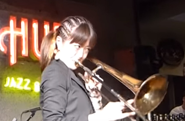 This girl's name is Haruka Kikuchi. They call her "The Queen of the Tailgate Trombone". I love her facial expressions, particularly her eyes during the refrains in this video.
