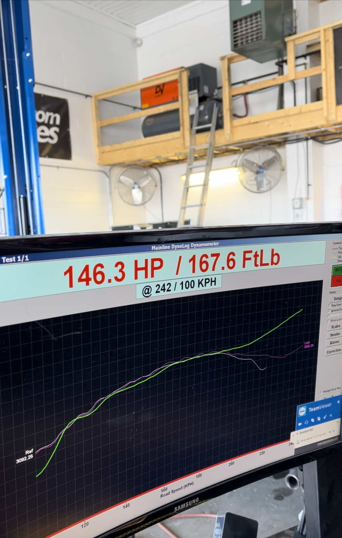 I assume this is "low" because it's at the wheels, as opposed to what it might look like on an engine dyno without any loss of course. Would anyone here know what a stock dyno at the wheels look like? I assume we're seeing ~25 more hp, and 50 more ft-lbs?