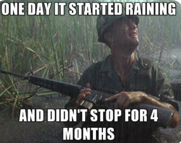 Yep. 3 back to back typhoons named Joan on the 15, Kate on the 25th and Louise on the 29th in Oct 1970 shut down the whole Vietnam War in the I Corps South of Danang and operations shifted from combat to rescue operations right at the end of regular monsoon season