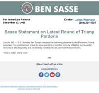 What's ahead for Nebraska Senator Ben Sasse? The Republican Party-affiliated Senator was just reelected to a six-year term and barring a recall initiative, or perhaps some new job with the Biden-Harris administration, "Ben"--we go way back --would not be up for reelection to his current seat until 2026.
