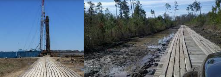 I have driven many a mile on plank (board) roads. These, are in comparatively good shape compared to what they look like near the end of the job...