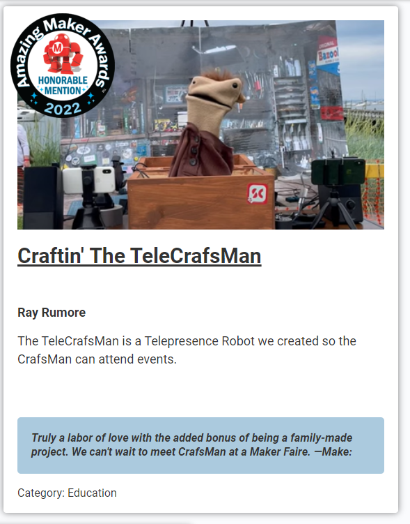 Things turned out exactly the way we had hoped. We received an honorable mention, and most of the projects we were rooting for won.