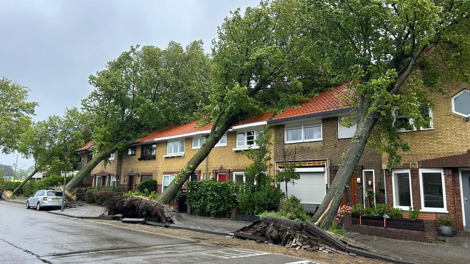 Because of the type of soil we have in the Netherlands, houses are built on poles that go deep into the ground. Once the houses are built, trees are planted. Their roots don't have much room to grow however so they don't grow to be very big.