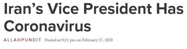 "This isn’t the vice president, it’s Iran’s health minister at a briefing a few days ago at which he reassured the public that they have the coronavirus outbreak under control. Shortly afterward he was diagnosed with coronavirus. You’re watching him here in the early throes of the disease, right in front of the media."
