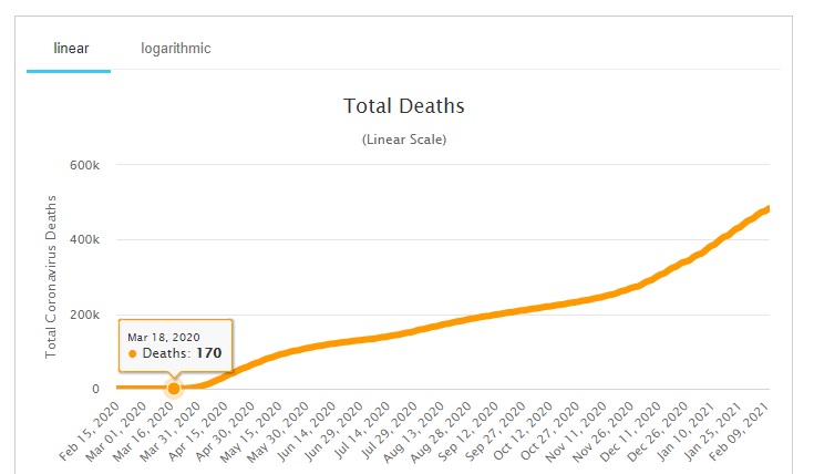 The information used to make that graph appear to be nearly a year old. It states: "US Data as of March 18 2020". On that date, there were less than 200 total deaths from Covid in the USA.