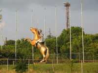 | quote | Nestled on a private grass verge along Interstate-65, just south of Nashville, there’s a 25-foot Confederate tribute, which someone generous might call a statue and others might call so transcendently stupid and ugly it disproves white supremacy. It is both silver and gold and topped with a layer of pink paint. The figure resembles an extra-large novelty nutcracker frozen in carbonite, mouth open Han Solo-style, perched on a horse and left to leer at passing DHL trucks into eternity. It is called the "Nathan Bedford Forrest Equestrian Statue."
