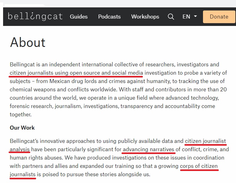 YEP, they even proudly admit...it's a garbage, phony "phact checking", SNOPES type website manned by a load of anonymous Leftie bloggers pushing bullshit NARRATIVES.............OH, excuse me, they call themselves "citizen journalists"...HAHAHAHA!