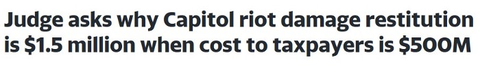 The DOJ and the and the Architect of the Capital gave the courts a damages cost of approx. $1.5 MILLION