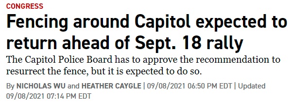 "Fence goes up around US Capitol, as law enforcement braces for Sept. 18 protest
