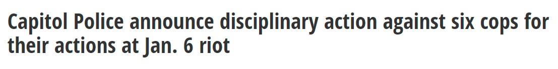 As of today 6 Capitol police officers are facing disciplinary action for their actions related to the MOSTLY PEACEFUL January 6, 2021 rally in DC