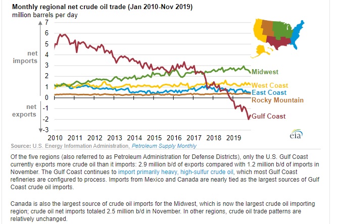You are, partly wrong. Unlike babies, not all oil is created equal. Even tho we as a nation are a net exporter of crude oil and refined crude products, it isn't true for all states. People think oil is cheap to ship/transport. It isn't. It IS,complicated. Pipelines are generally owned by pipeline companies with sometimes a refining company owning a share of it, but federal law requires the ownership to allow any refinery or midstream company access to the lines as long as there is capacity available and the user pays the tolls. Cost/bbl/mile and, it is also dependent on the spot price (value of the product) and the type crude or finished product being pumped thru the line. For the Canada side of the Keystone, the cost is calculated on cu litre and not the standard 42 gal bbl. It's cost also depends where the oil is going (it's destination) Looking at the tolls on Dec 31 2020, heavy crude pumped from Hardisty, Alberta to the U.S. border near Haskett Manitoba, with deliver to Houston Texas it cost the destination $16.53/cu ltr. On the same day, heavy crude from the same source going to Cushing Ok cost $19.38. Crude going to Wood River/Patoka Ill cost $17.50/cu ltr the same date. Why was it cheaper to ship all the way to Houston--because they have what is known as a 20 yr committed contract for certain oil coming thru the Keystone. Cushing and Patoka have comitted contracts for some products, and are uncomitted for others. In the above case, they were getting oil not comitted to their contract.