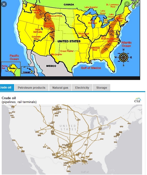 LNG/LPG and other finished product lines can cross mountains as it is so much lighter and less viscous than crude. Generally tho, those lines run East along the Gulf Coast and then up the Eastern seaboard. I know a lot of LPG and home heating oil was trucked NE one recent winter as there was insufficient pipeline capacity to supply the NE with it's needs and there was a lot in the news about it. Hank Hill made a killin that year.. You can poke around the EIA's website and get a clearer picture.. that's the same page the crude oil pipeline map came from.
