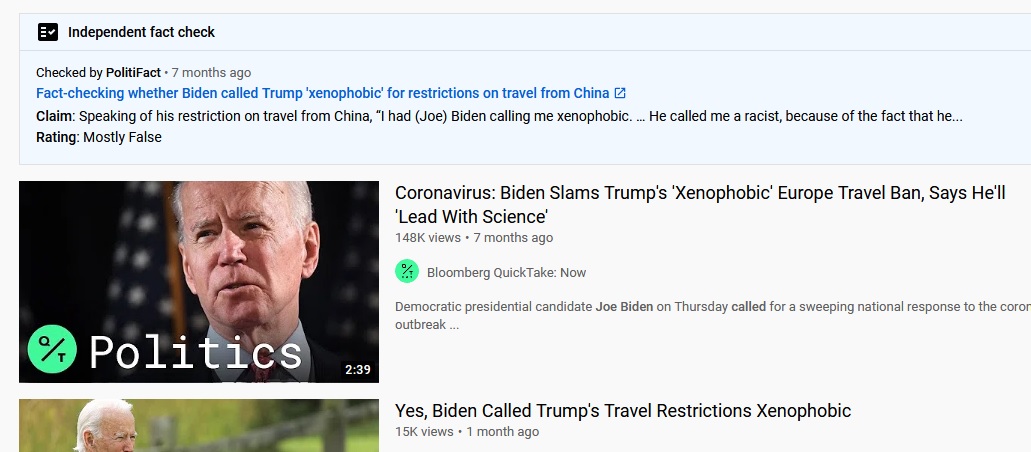 Go to YouTube and type in something like "biden calls trump xenophobic". You get this at the top of the search results: