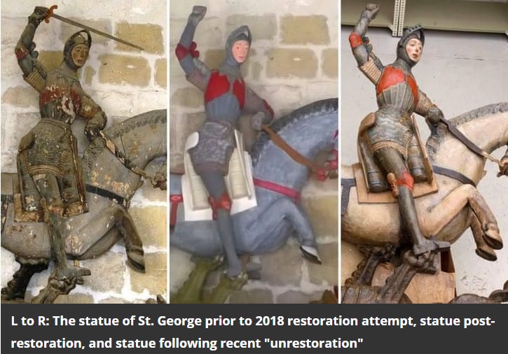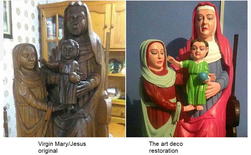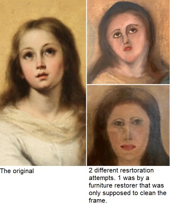 If I remember correctly, it was a nice old lady who attempted to restore it, but it was so horrendous, haha... she felt really, really bad too if I remember correctly.
