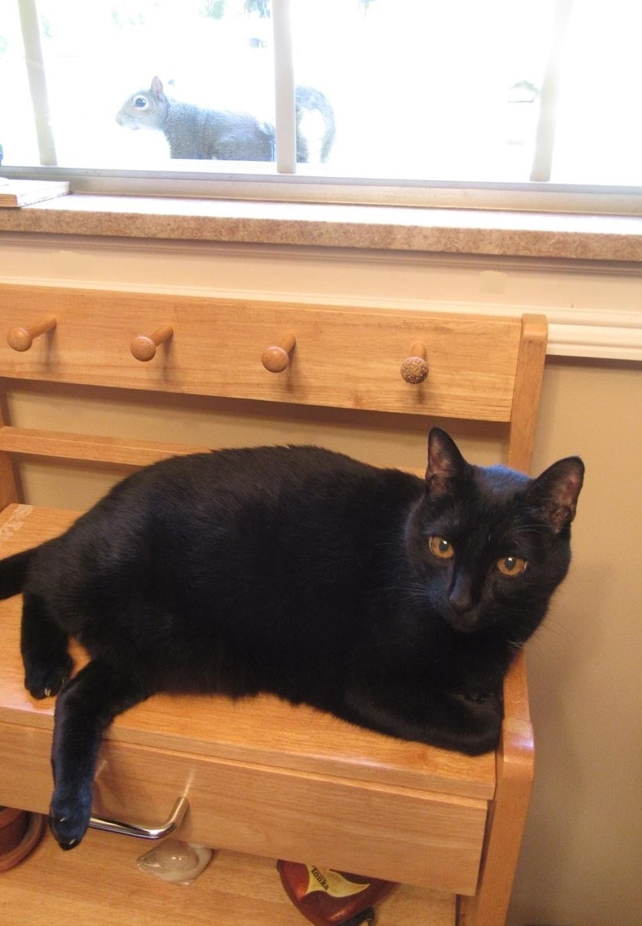 A squirrel you say? And hes right outside the window? yeah, mm huh.