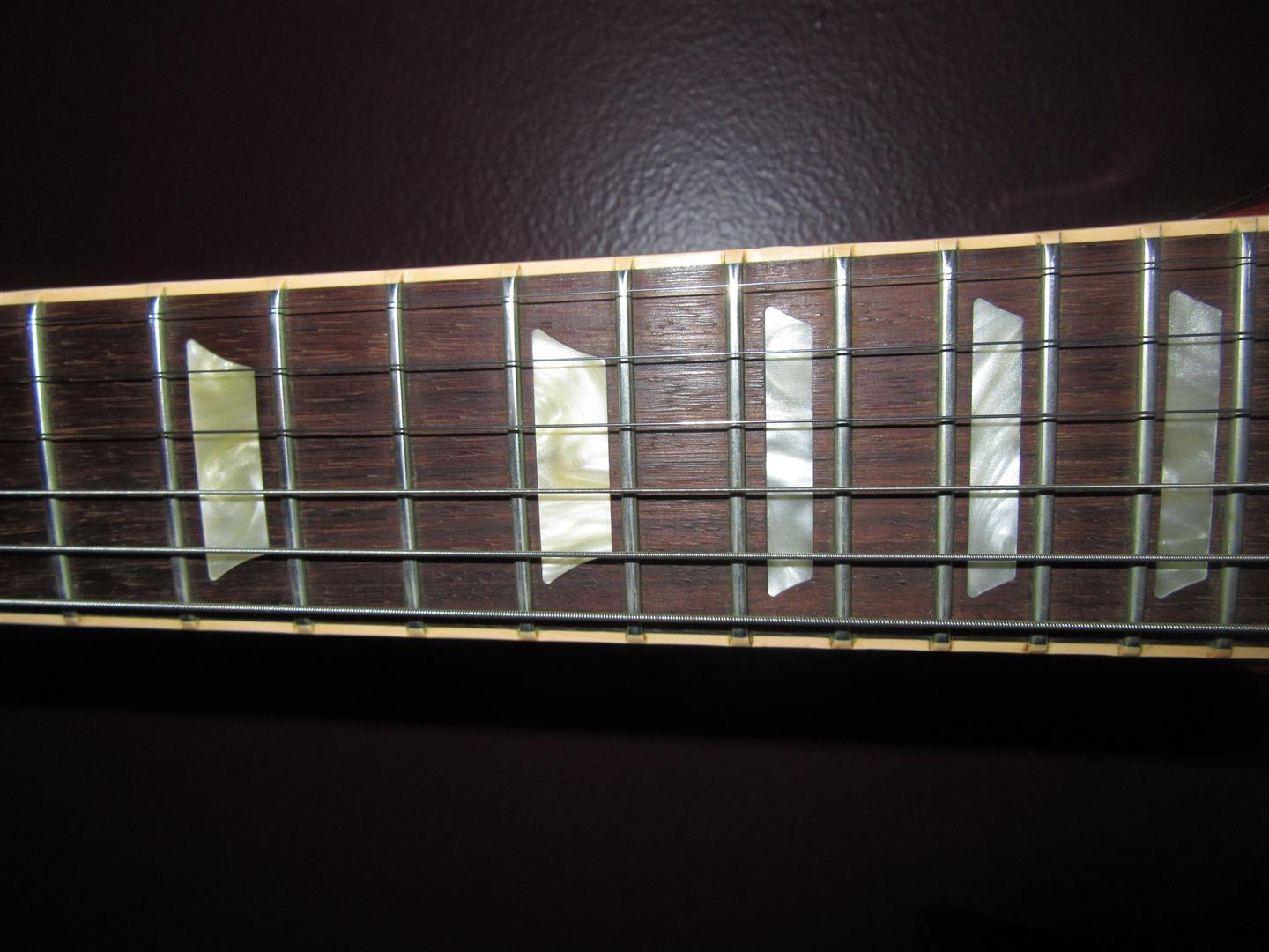 Another set neck. Same low dollar fret inlays, but it's just a replica.