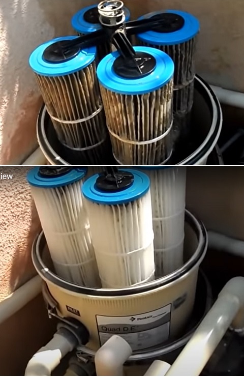 Not mine (screen shot from youtube) before and after cleaning cartridge type filters: